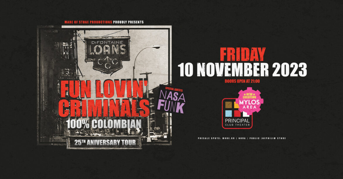 FUN LOVIN’ CRIMINALS – 25th ANNIVERSARY 100% COLOMBIAN ζωντανά σε Θεσσαλονίκη & Αθήνα! Παρασκευή 10 Νοεμβρίου – Principal Club Theater, Θεσσαλονίκη Opening Act@Θεσσαλονίκη: NASA FUNK Σάββατο 11 Νοεμβρίου 2023 – Gazarte Ground Stage, Αθήνα Οι Fun Lovin’ Criminals, το σχήμα που μετουσίωσε το πολιτισμικό blend της Νέας Υόρκης σε μια σειρά από groundbreaking albums, γιορτάζει […]